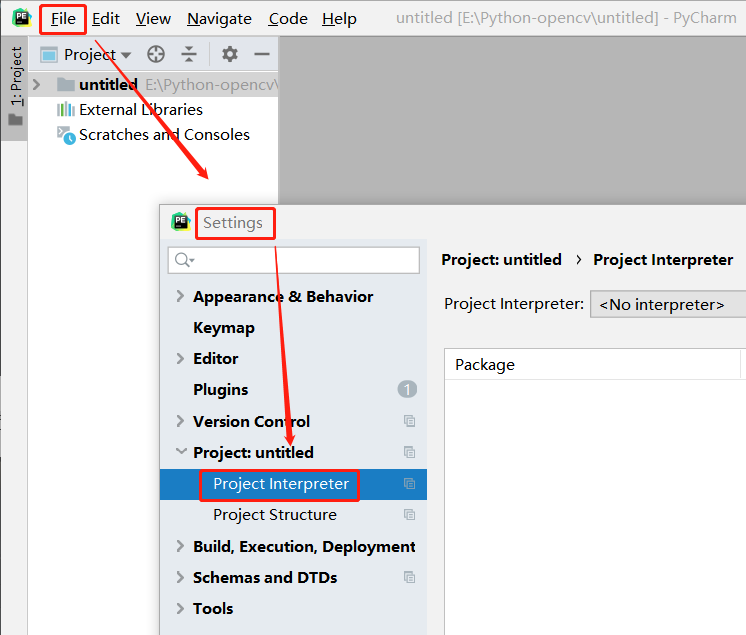 1、File —> Settings 或 ' ctrl/comman ' + ' , ',打开以下Settings弹窗,依次进入Project: (project name) —> Python Interpreter设置项,右侧选择 Add。