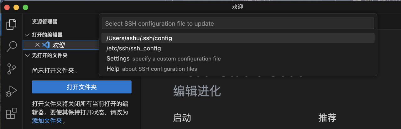 出现图示自定义 SSH config 文件的弹窗无需选择,继续回车即可。