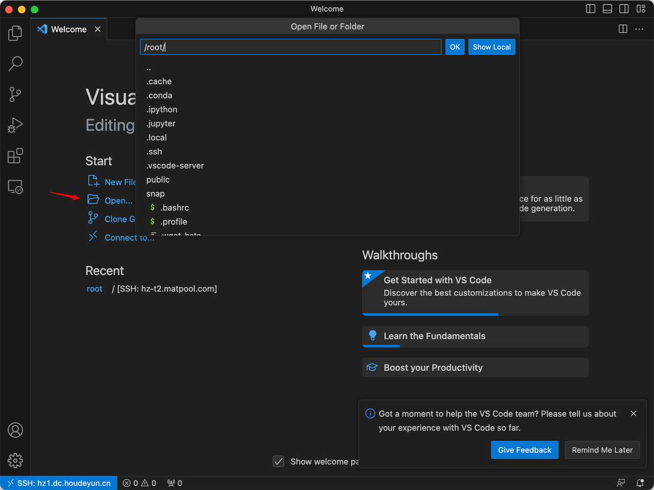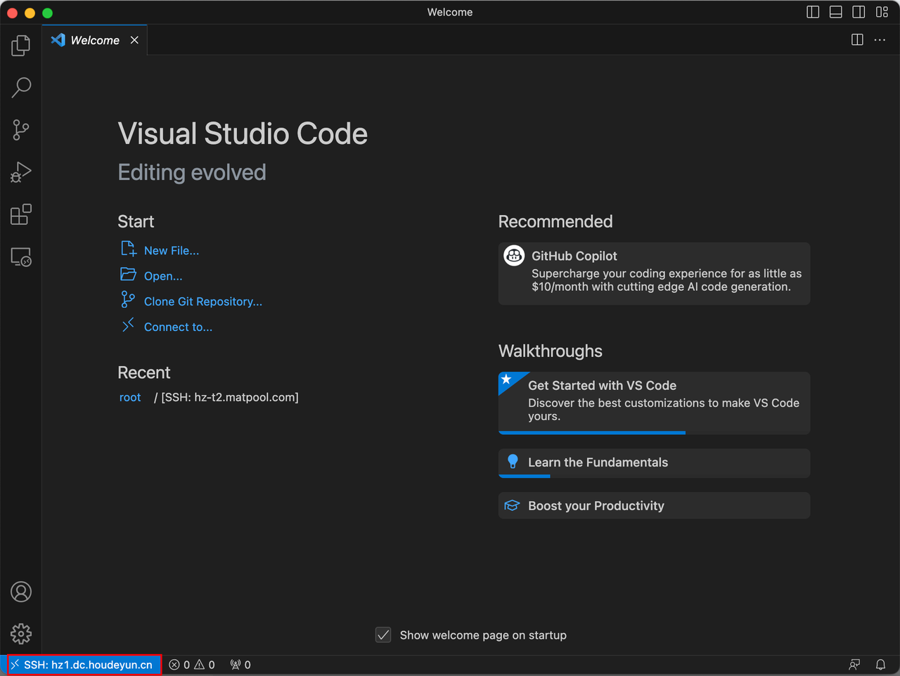 选择过后,Visual Studio Code 会断开当前连接并重新连接实例,你需要再次输入密码。