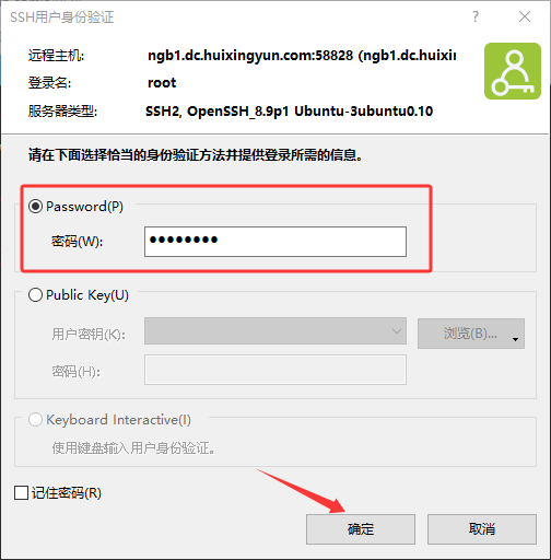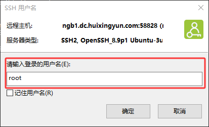 5、慧星云的默认用户名是root,点击确定进入身份验证窗口