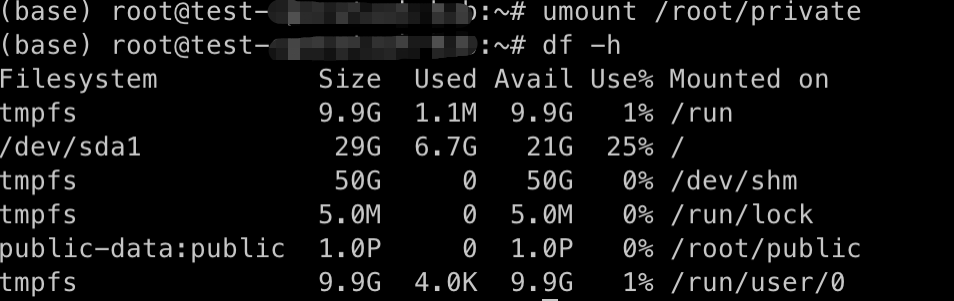 5、卸载「文件存储」:卸载命令:umount /root/private