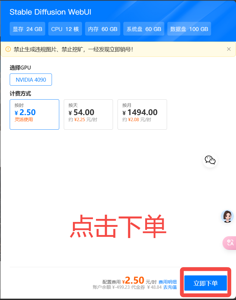 二、下单 Stable Diffusion WebUI
