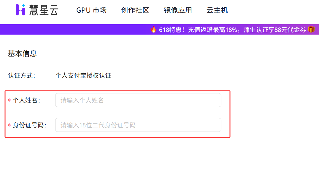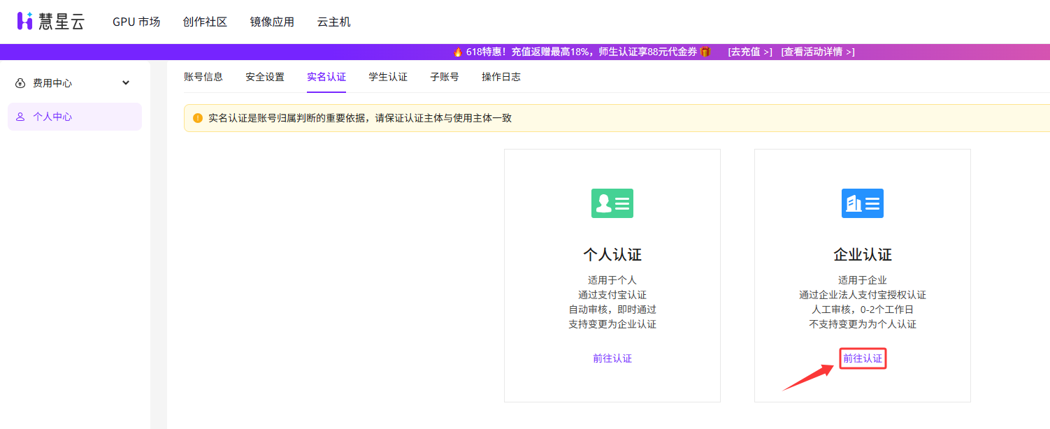 本文将指导您为慧星云账号进行个人实名认证操作,实名认证完成后,该账号将归属您个人名下。
